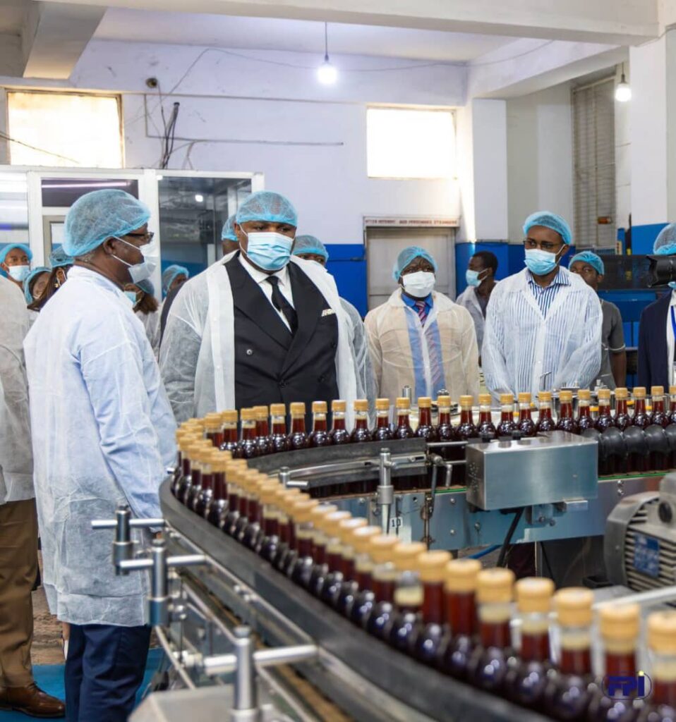 Le Directeur Général Adjoint du Fonds de Promotion de l’Industrie (FPI), M. Blaise Mastaky, a effectué, le 19 novembre dernier, une visite de travail à l’usine African Foods and Beverages Sarl (AFB Sarl), unité industrielle spécialisée dans la production d’eau minérale, de boissons gazeuses et de boissons sucrées. Cette mission s’inscrit dans le cadre du suivi des projets financés par le FPI et du renforcement du partenariat avec les industries nationales.