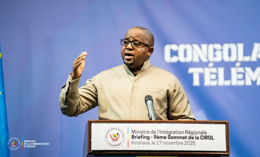 « La République démocratique du Congo ne prend pas la présidence de la Conférence internationale sur la région des Grands Lacs dans un but revanchard ». Cette déclaration faite par Floribert Anzuluni, ministre de l’intégration régionale lors d’un Briefing presse lundi 17 novembre est l’illustration d’une conviction bien ancrée dans la RDC dirigée par le président Félix Tshisekedi : le pays entend booster la coopération régionale pour le développement et la paix. Devant la presse, le gouvernement par le biais de Floribert Anzuluni et de Patrick Muyaya porte-parole de l’exécutif, a tenu à expliquer les enjeux de la tenue à Kinshasa du IXᵉ Sommet des Chefs d’État de la Conférence internationale sur la région des Grands Lacs.