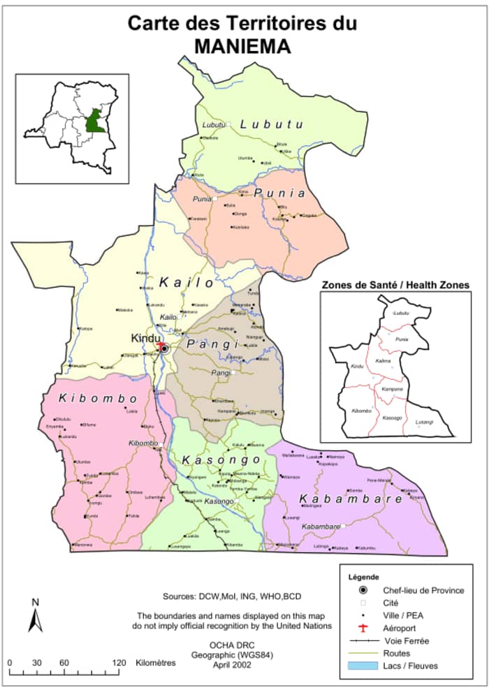 Située à l’Est de la République démocratique du Congo (RDC), la province du Maniema possède d’énormes potentialités, notamment ses riches ressources naturelles (minerais comme le cobalt, cuivre, étain, et ses vastes forêts tropicales), un potentiel hydroélectrique élevé, d’abondantes terres arables et une biodiversité exceptionnelle. Le province dispose aussi d’un riche patrimoine touristique et historique et d’un important capital humain, bien que le chômage des jeunes et les défis d’infrastructures freinent encore son développement.