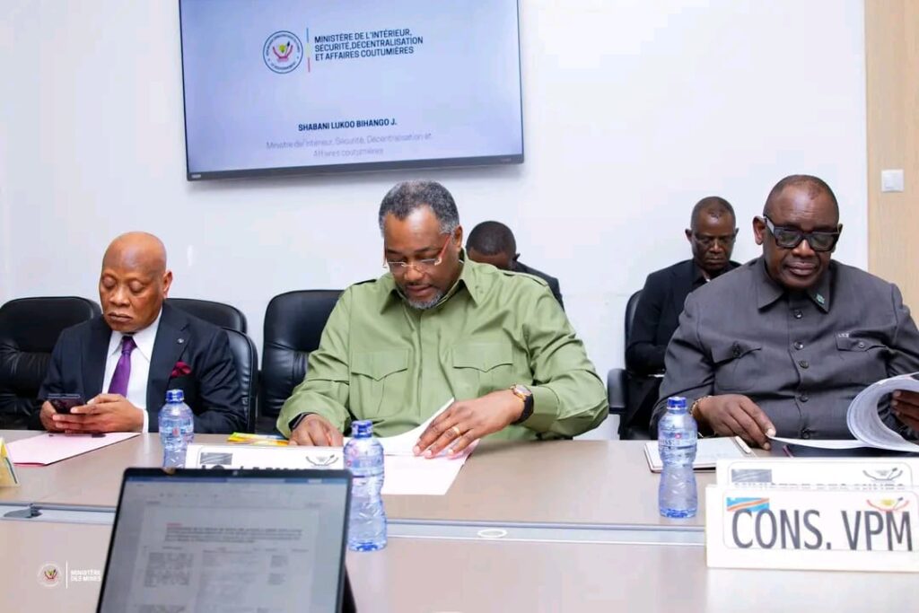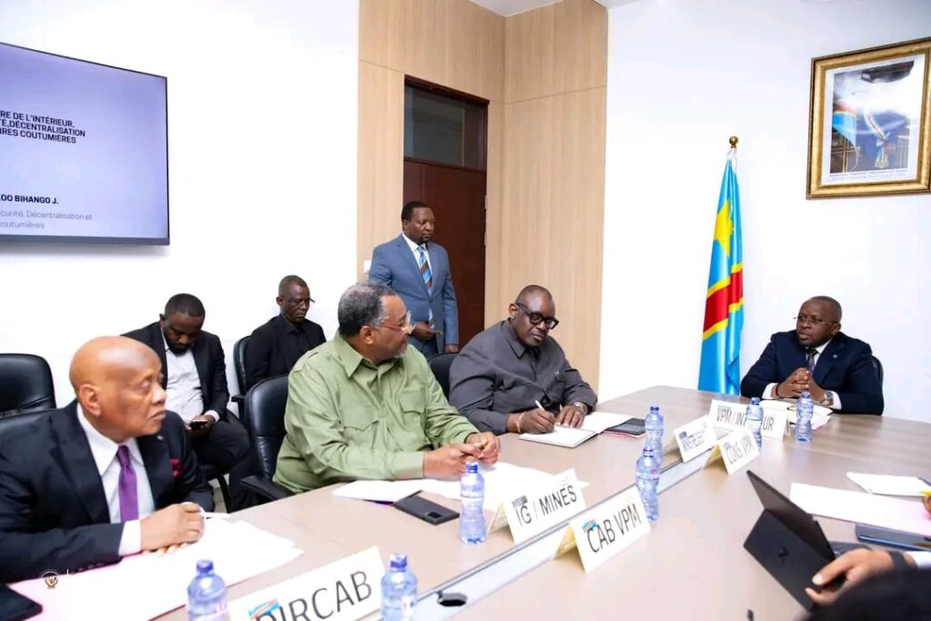 Le Ministre national des Mines, Louis Watum Kabamba, a pris part, ce mardi 25 février, à Kinshasa, autour du Vice-Premier Ministre, Ministre de l’Intérieur, Décentralisation et Affaires coutumières, Jacquemain Shabani Lukoo, à la réunion de la Commission de lutte contre la fraude minière, en présence de l’Inspecteur Général des Mines récemment nommé par le Chef de l’État.
